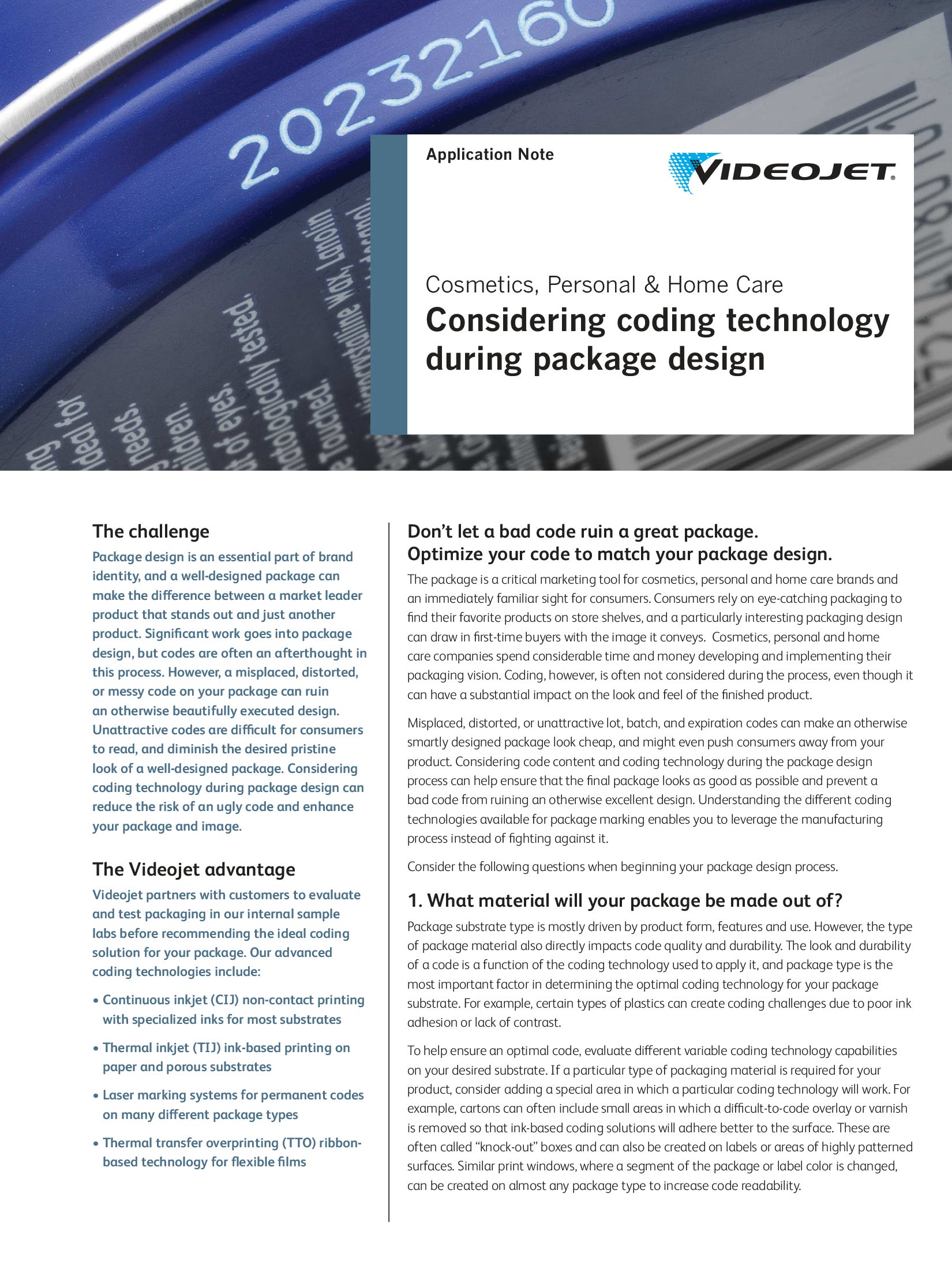 - versatile coding solutions for almost any package material, size or color
