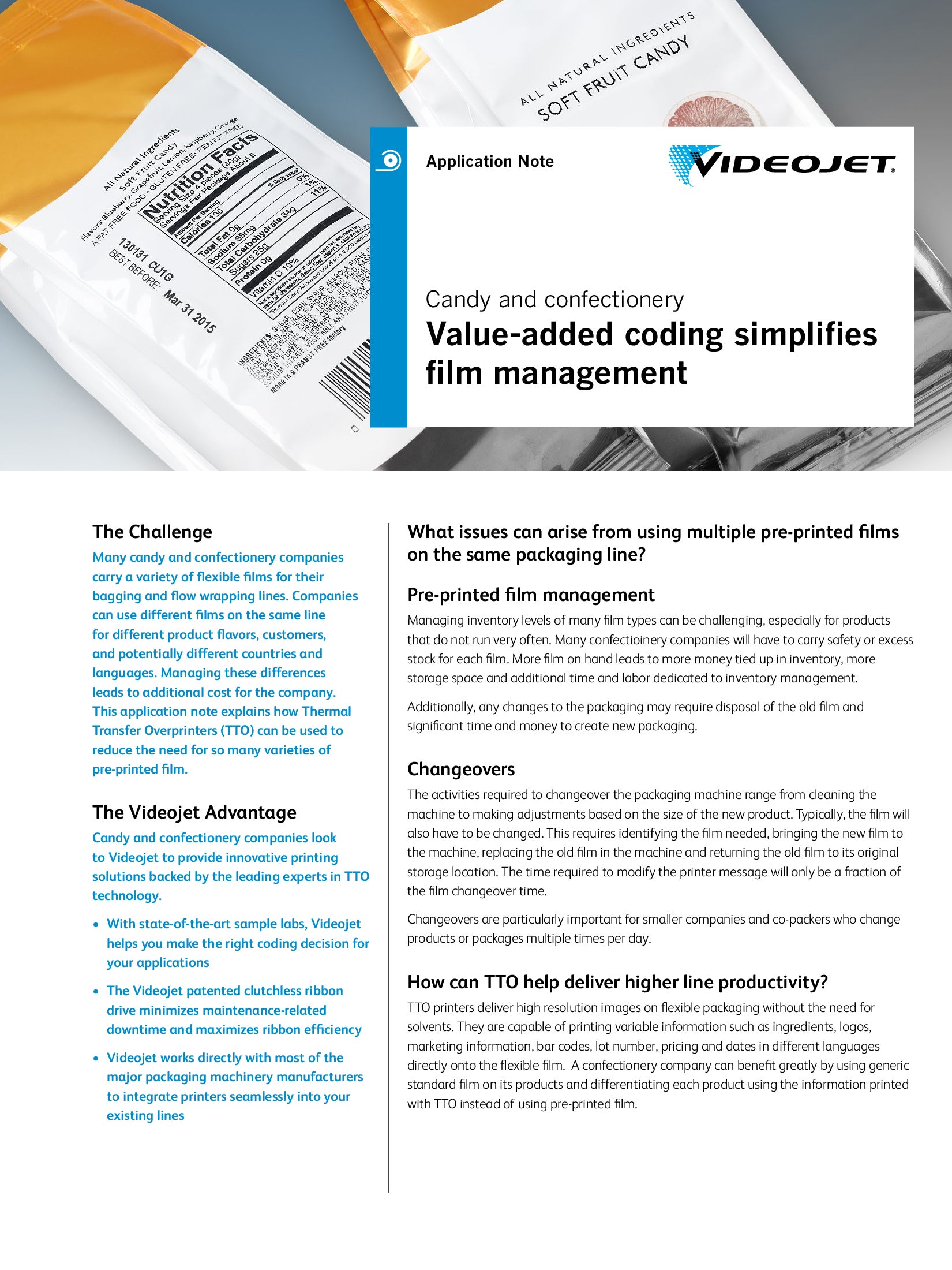 Many candy and confectionery companies carry a variety of flexible films for their bagging and flow wrapping lines. Companies can use different films on the same line for different product flavors, customers, and potentially different countries and languages.