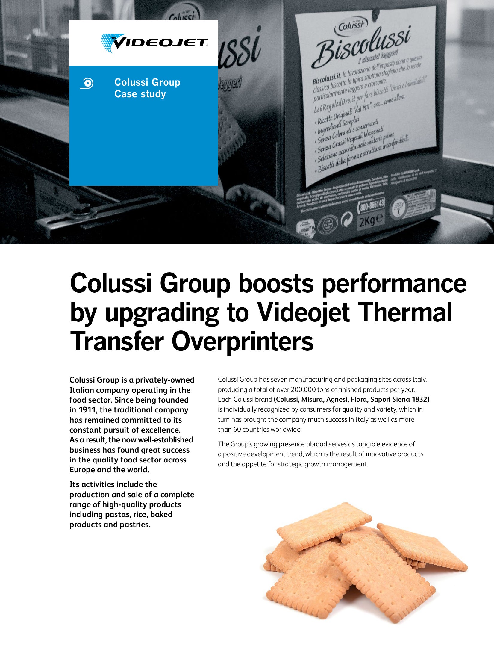 All products manufactured by Colussi must comply with standard food labeling regulations and therefore most codes being printed contain alphanumeric characters and bar codes. Colussi’s core product range most commonly use bags, flexible film and cases.