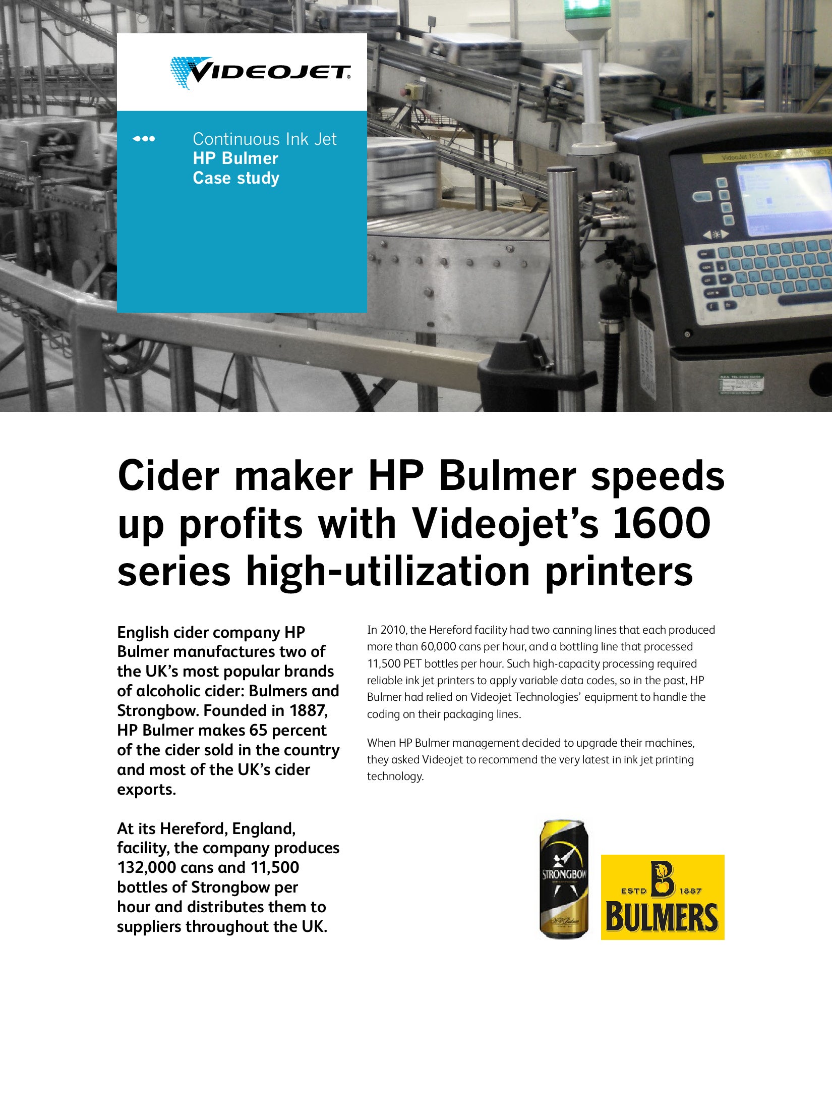 To meet the need for five lines of text printed at HP Bulmer’s extremely high speeds, Videojet suggested industry-leading the Videojet 1000 Line of continuous inkjet printers designed for 24/7 production and extended run times before requiring maintenance. Bulmers’ codes on beverage cans required a Julian date, a best-before date, a time stamp, and a reference to the production line. Learn more. Learn more….